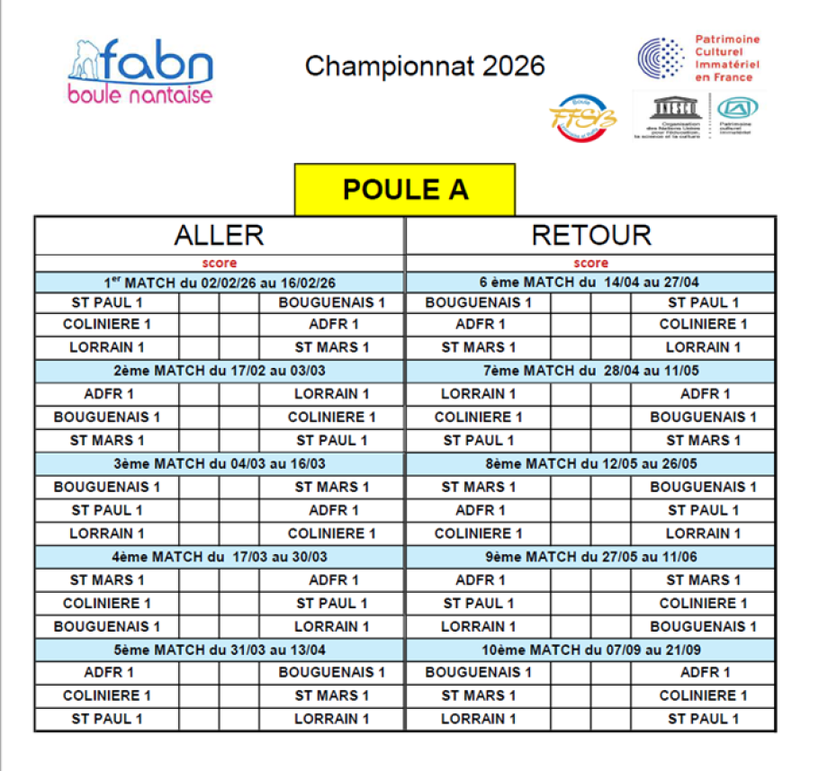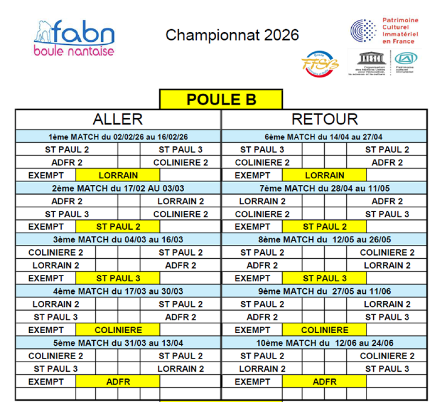 L'édition 2026 compte 15 équipes, 2 poules 4 équipes Mixtes et une équipe féminine