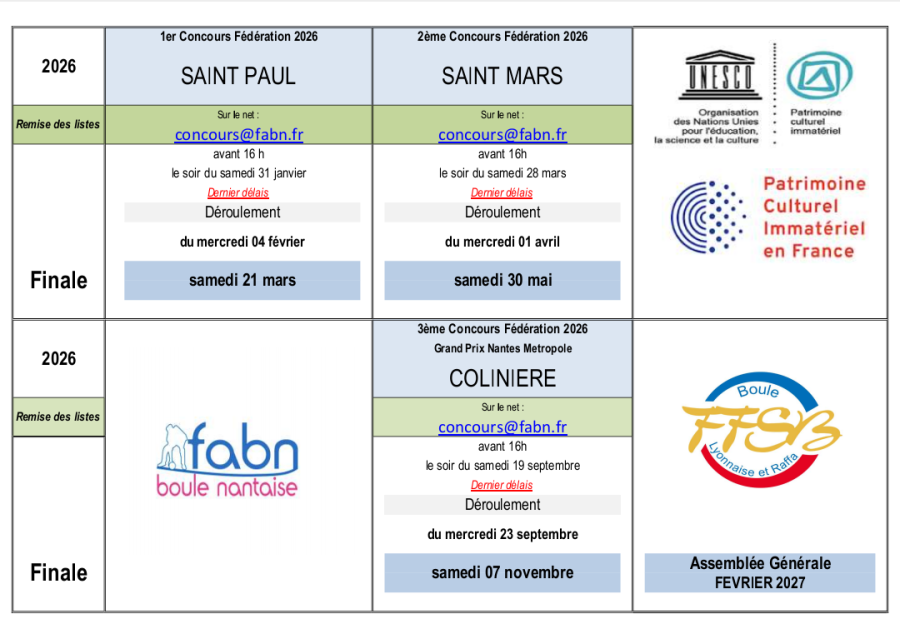 -Les Joueurs de chaque club participent tout au long de l'année aux concours fédéraux organisés par la FABN. Il peut y avoir jusqu'à six concours, les joueur(se)s participent en 3x3 et chaque concours peut durer six semaines.